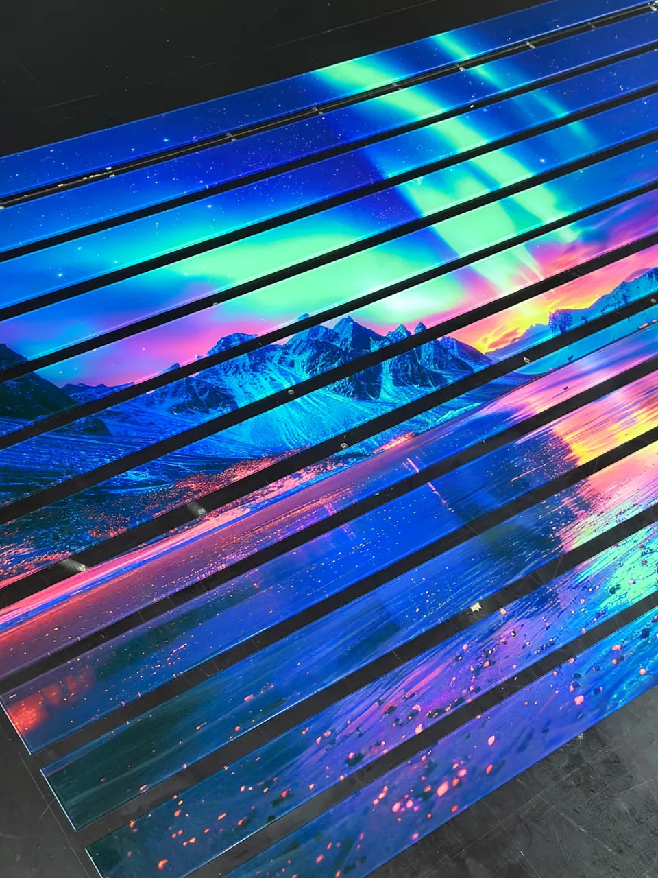 Zapraszamy do obejrzenia naszych realizacji lameli ściennych ze szkła hartowanego z nadrukiem UV. W galerii znajdziesz zdjęcia i materiały wideo prezentujące proces produkcji oraz gotowe dekoracje. Lamele szklane łączą elegancję, trwałość i nowoczesny charakter, dzięki czemu świetnie sprawdzają się w domach i przestrzeniach komercyjnych. Druk UV gwarantuje intensywne kolory i długowieczny efekt wizualny.