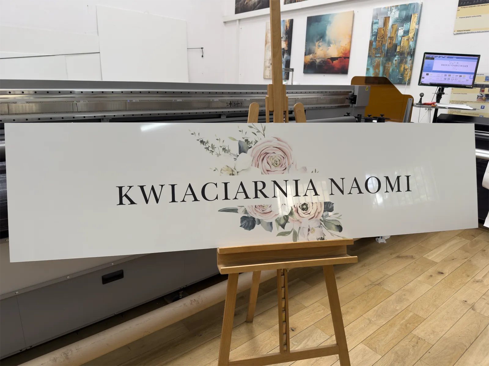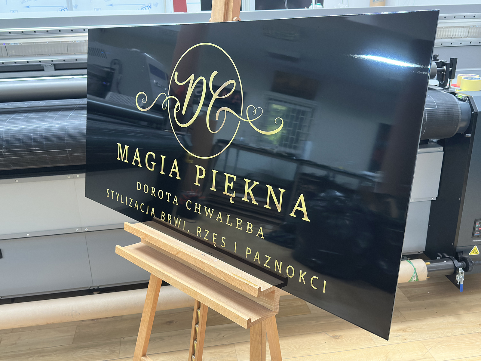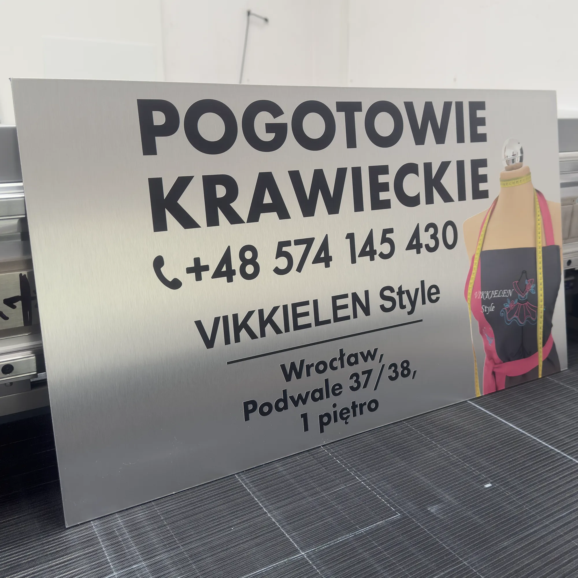 Zobacz zdjęcia naszych realizacji szyldów reklamowych z Dibondu – trwałych i estetycznych rozwiązań dla nowoczesnych firm. Produkujemy szyldy w szerokiej gamie kolorów materiału: biały, czarny, antracyt, ciemnoszary, srebrny szczotkowany, złoty szczotkowany, srebrny satynowy, pomarańczowy, czerwony, niebieski, zielony oraz żółty. Każdy szyld wykonywany jest metodą bezpośredniego druku UV, który zapewnia precyzyjny i odporny na warunki zewnętrzne nadruk. Szyldy Dibond łączą elegancki wygląd aluminium z trwałością i sztywnością kompozytu, dzięki czemu zachowują idealny wygląd przez lata. W naszych realizacjach znajdziesz przykłady reklam na elewacjach budynków, w biurach i przestrzeniach handlowych. To profesjonalne i efektowne nośniki reklamy, które podkreślają wizerunek marki i przyciągają uwagę.