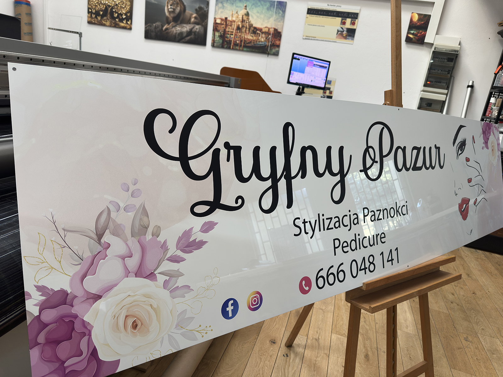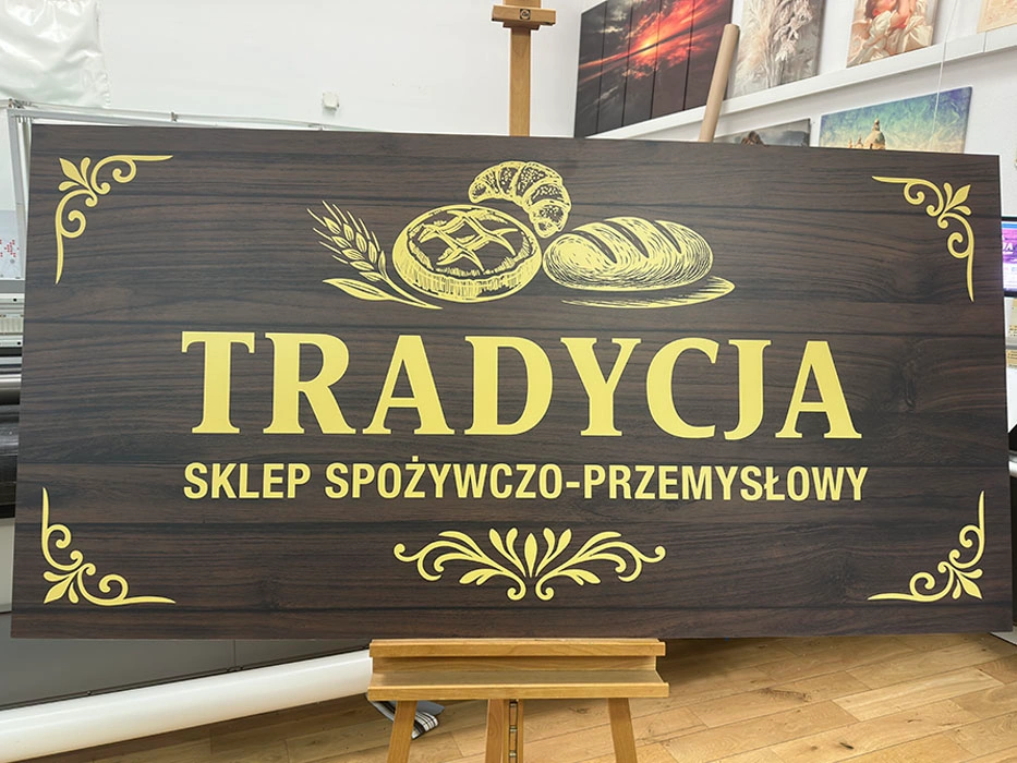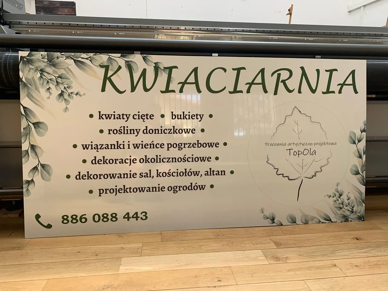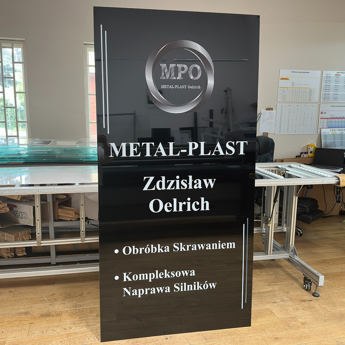 Zobacz zdjęcia naszych realizacji szyldów reklamowych z Dibondu – trwałych i estetycznych rozwiązań dla nowoczesnych firm. Produkujemy szyldy w szerokiej gamie kolorów materiału: biały, czarny, antracyt, ciemnoszary, srebrny szczotkowany, złoty szczotkowany, srebrny satynowy, pomarańczowy, czerwony, niebieski, zielony oraz żółty. Każdy szyld wykonywany jest metodą bezpośredniego druku UV, który zapewnia precyzyjny i odporny na warunki zewnętrzne nadruk. Szyldy Dibond łączą elegancki wygląd aluminium z trwałością i sztywnością kompozytu, dzięki czemu zachowują idealny wygląd przez lata. W naszych realizacjach znajdziesz przykłady reklam na elewacjach budynków, w biurach i przestrzeniach handlowych. To profesjonalne i efektowne nośniki reklamy, które podkreślają wizerunek marki i przyciągają uwagę.