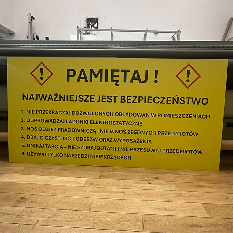 PCV sprawdza się szczególnie dobrze w realizacjach wielkoformatowych, w których ważne są lekkość i możliwość szybkiego montażu. Płyty są odporne na odkształcenia, można je frezować, wiercić, łączyć ze sobą i dopasowywać do różnych konstrukcji. To praktyczna opcja do projektów wymagających większych powierzchni, serii powtarzalnych elementów oraz stałej identyfikacji wizualnej w przestrzeniach handlowych, biurowych i usługowych, ale także do dekoracji i tablic zamawianych pojedynczo.