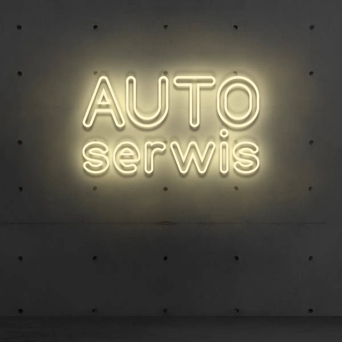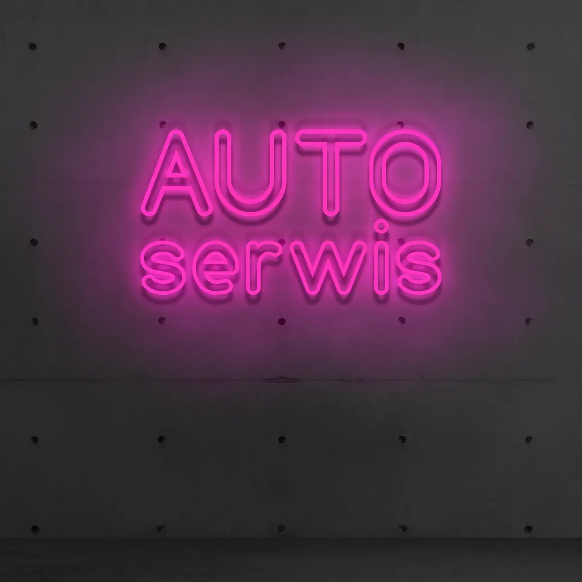 Auto serwis to nieodłączny element współczesnych usług, bez którego trudno wyobrazić sobie codzienne życie kierowców. Wielu z nich, podróżując, instynktownie wypatruje miejsc, gdzie mogą liczyć na szybką pomoc. Dlatego warto zadbać o to, by Twój warsztat był dobrze widoczny. Doskonałym rozwiązaniem jest neonowy napis „Auto Serwis” – jego intensywne światło przyciąga wzrok z daleka. Nawet przejeżdżający kierowcy zauważą go w ułamku sekundy i zapamiętają lokalizację. Litery są wyraźne, proporcjonalne i estetyczne, a ich układ w dwóch rzędach wzmacnia efekt wizualny.