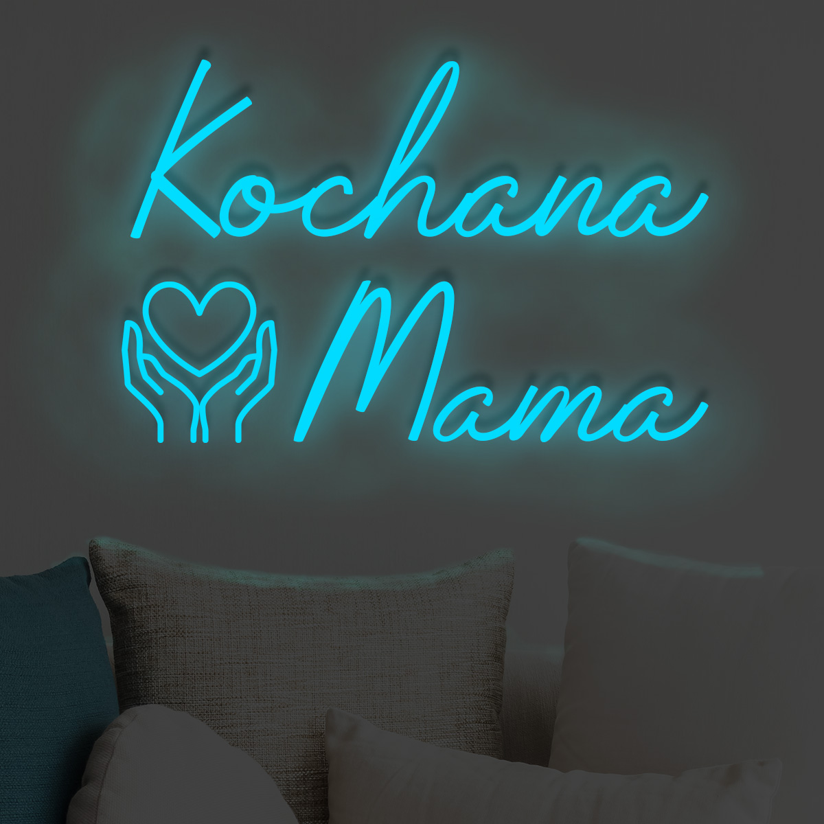 Design napisu LED na ścianę jest stonowany, niemal klasyczny, a jednocześnie delikatny i elegancki. Można go umieścić jako napis LED do pokoju lub wykorzystać do ozdobienia wnętrza w stylu neony do sypialni. Neonowy napis „Kochana Mama” dostępny jest w dziewięciu wariantach kolorystycznych oraz w różnych rozmiarach na zamówienie – dzięki temu z łatwością dopasujesz go do każdego wnętrza.