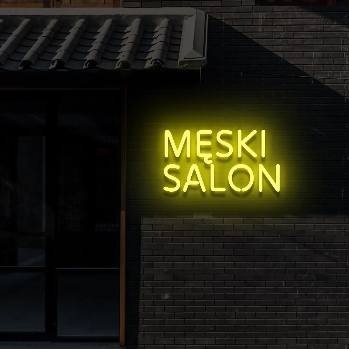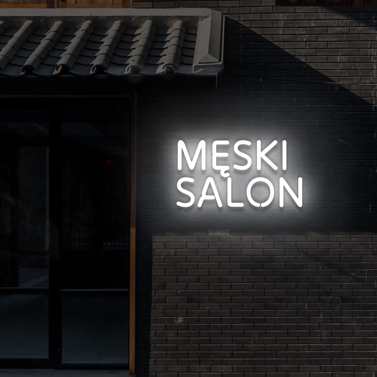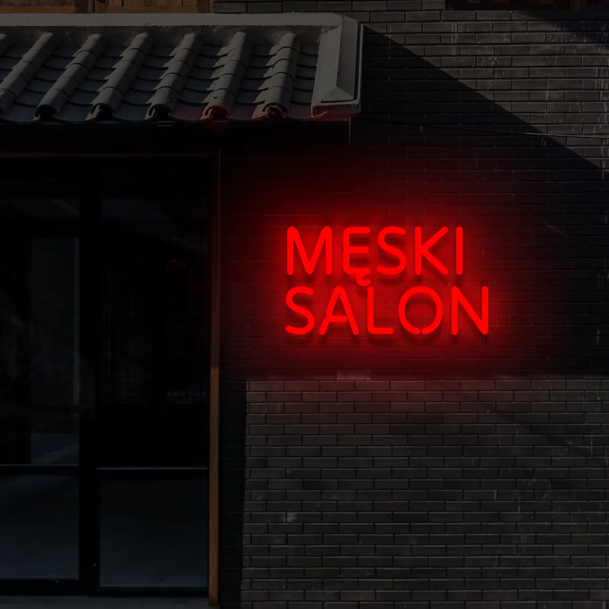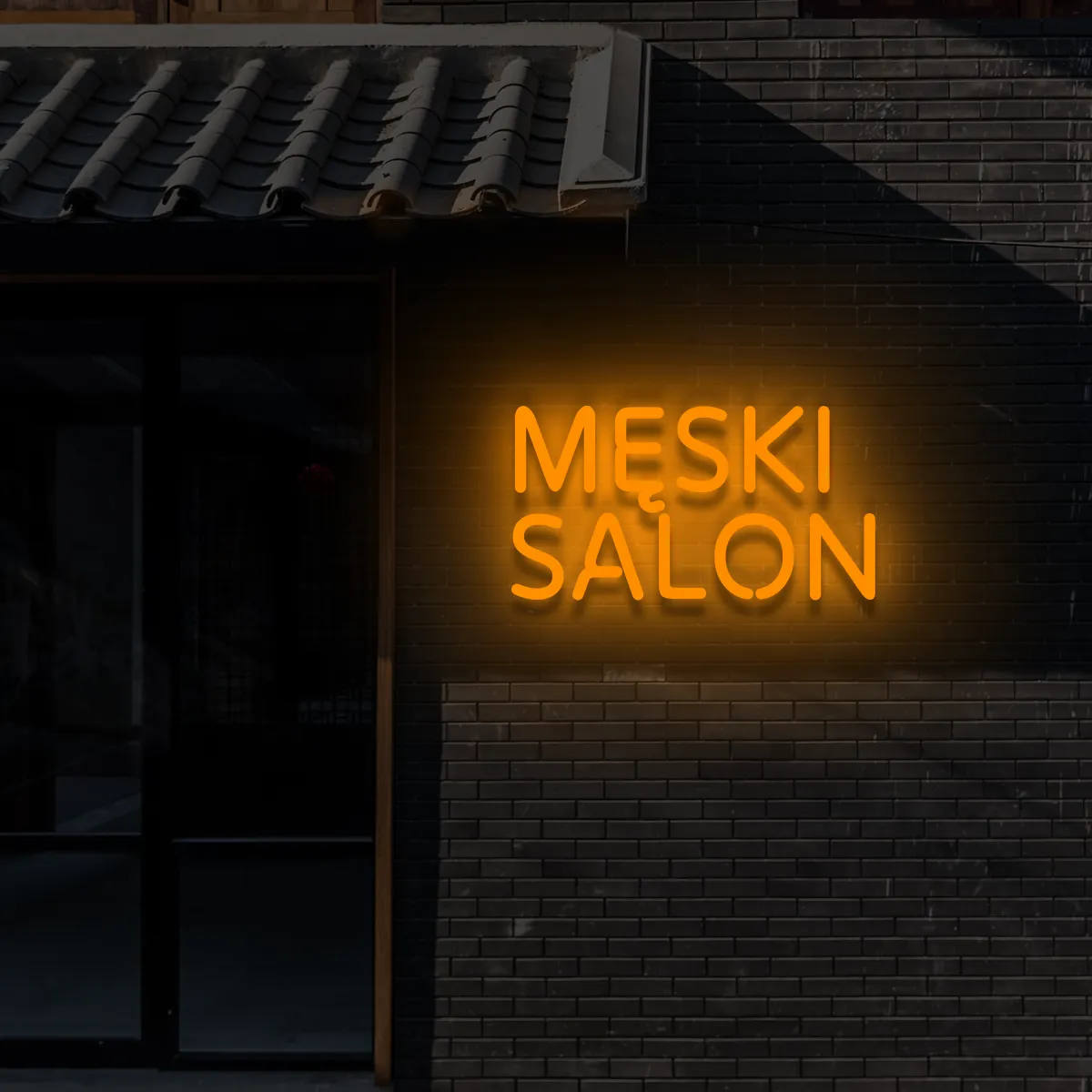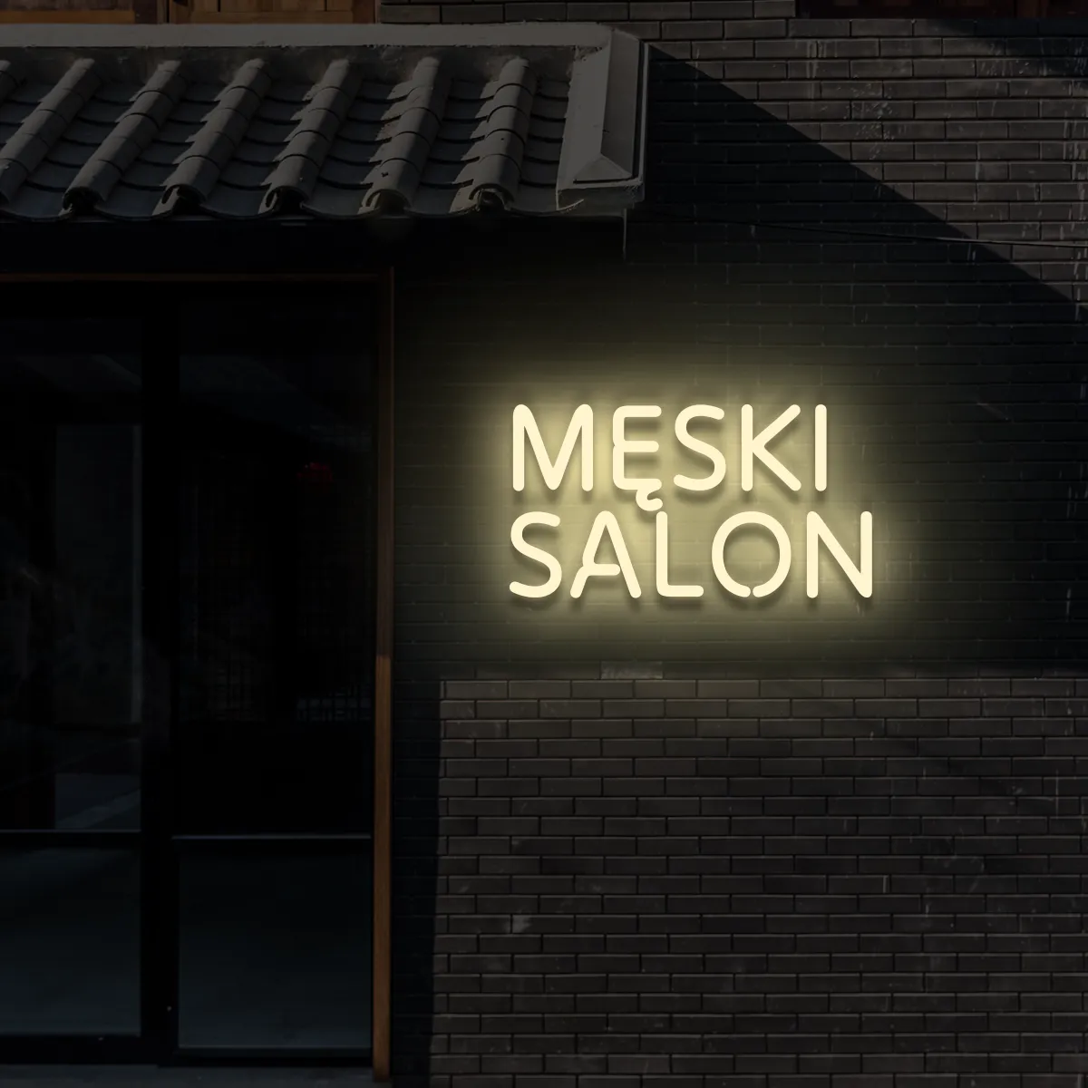 Neonowy napis „Męski salon” – terytorium pewności siebie
