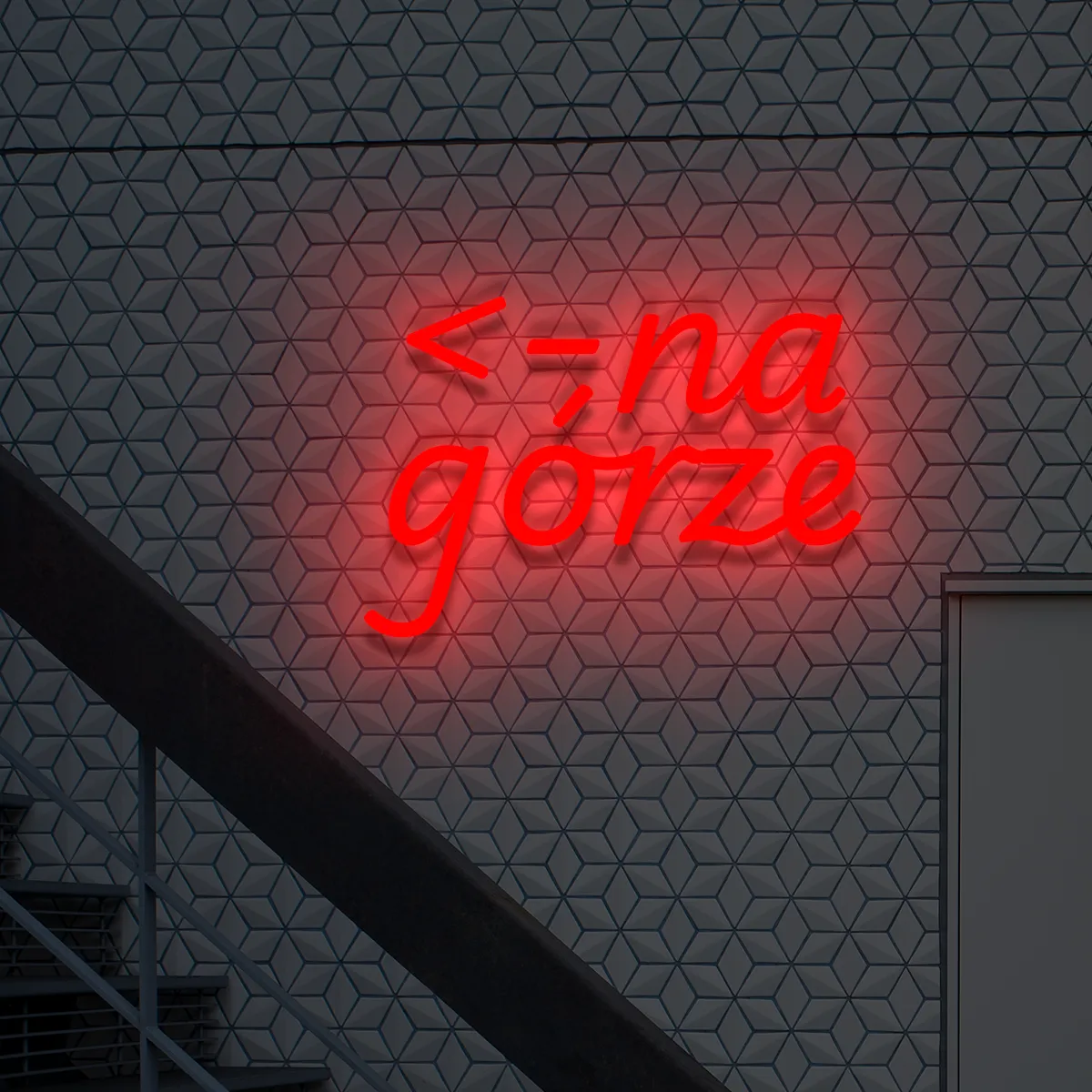 Czasem wystarczy kilka słów, by nadać przestrzeni charakter. Prezentowana tabliczka LED „Na górze” to właśnie taki element – prosta, ale wyrazista. Jej miękkie światło tworzy wrażenie kierunku i porządku, idealnie sprawdzając się w biurach, klubach fitness, hotelach lub kawiarniach z kilkoma poziomami. Taki neon z napisem można umieścić nad schodami, przy windzie lub na ścianie w strefie nawigacyjnej. Przyciąga wzrok i pomaga odwiedzającym łatwiej się odnaleźć.