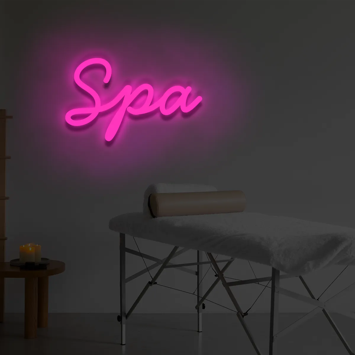 Neonowy napis “Spa” dostępny jest w dziewięciu kolorach i trzech rozmiarach – wybierz idealny wariant dopasowany do stylu swojego wnętrza.