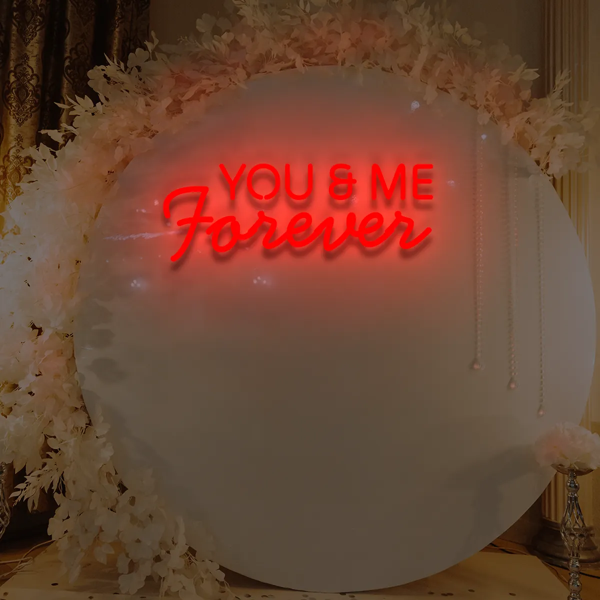 1. Do dekoracji przestrzeni komercyjnej. Napis “You&Me Forever” jest uniwersalny. Doskonale wpisze się zarówno w atmosferę młodzieżowej kawiarni, jak i eleganckiej sali bankietowej.
