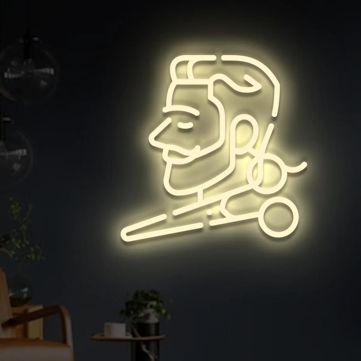 W witrynie ten neon podkreśla charakter miejsca: surowy loft, oldschoolowa klasyka albo minimalistyczny nowoczesny styl — neon wpisuje się w każdy z tych scenariuszy. W środku można umieścić go nad fotelami, przy lustrach albo w strefie oczekiwania, aby klienci mieli gotowe tło do zdjęć „przed/po”. W ten sposób neon barbershopu pracuje na Twoją markę: ludzie sami tworzą treści, oznaczają lokalizację, a Ty częściej pojawiasz się w mediach społecznościowych.