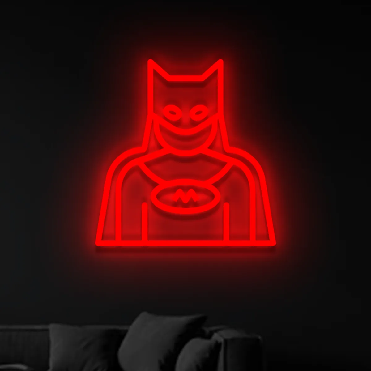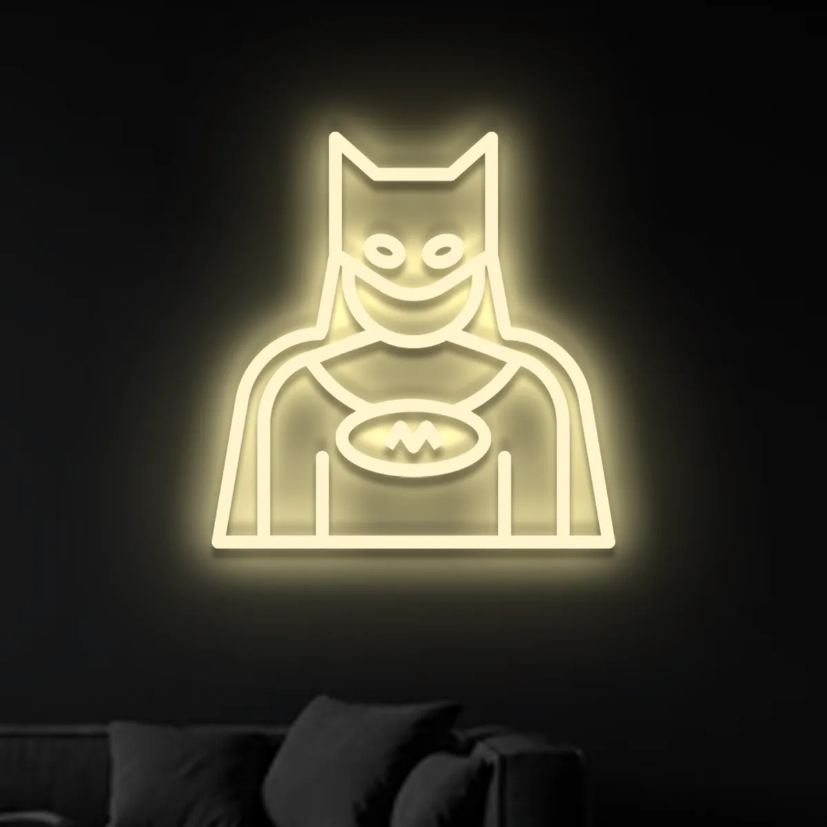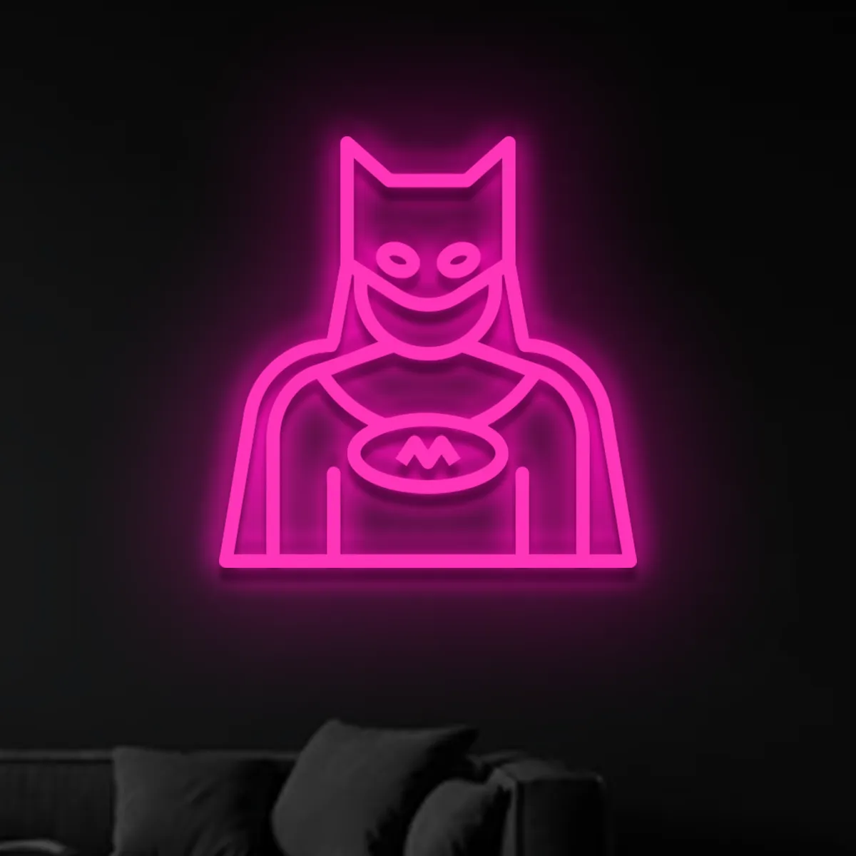 Zawieś neon Batman w salonie, sypialni, pokoju dziecka, strefie gamingowej, domowym barze lub gabinecie – wszędzie tam, gdzie potrzebny jest stylowy i rozpoznawalny akcent. Ten dark knight neon podoba się zarówno dzieciom, jak i dorosłym i natychmiast zamienia zwykłą ścianę w efektowny obiekt dekoracyjny.