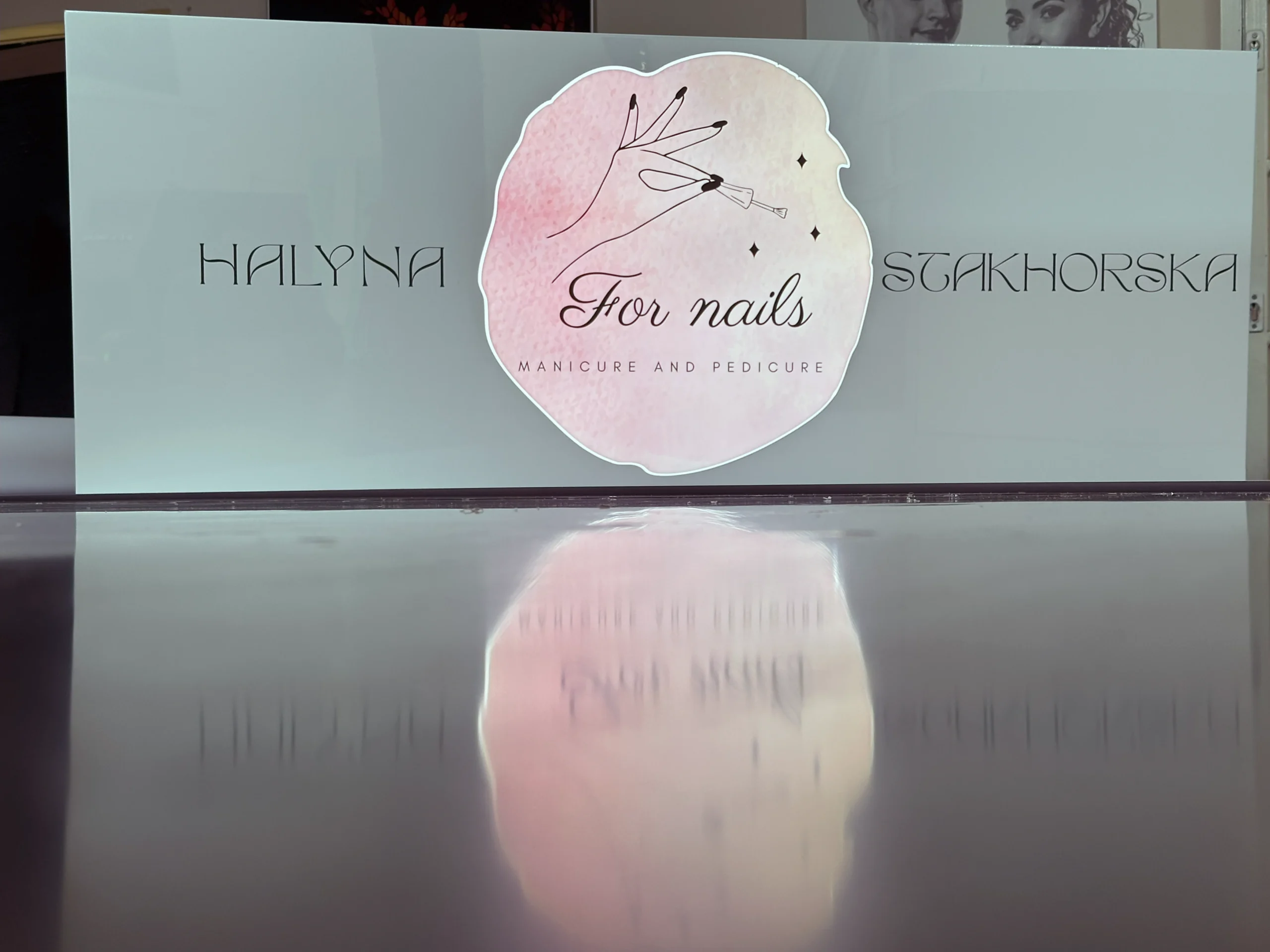 Podświetlenie wybranych elementów szyldu realizowane jest przy użyciu nowoczesnej technologii LED z dyfuzorem światła, co pozwala uzyskać efekt głębi i eleganckiego rozświetlenia.