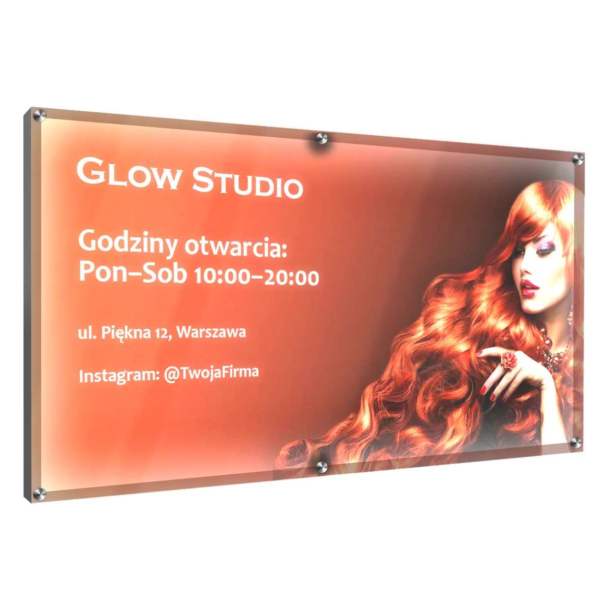 Zamówienie możesz złożyć bezpośrednio na stronie, korzystając z konfiguratora produktu. Wybierz wymiary, grubość płyty, rodzaj wykończenia powierzchni (mat lub połysk) oraz typ dystansów do montażu. Następnie określ typ grafiki, czyli motyw, który ma być podświetlany – może to być prosty napis, logo lub bardziej złożony wzór.