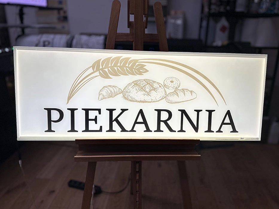Dzięki doświadczeniu naszego zespołu w tworzeniu reklam świetlnych opracowaliśmy nowoczesny model kasetonu – szyld podświetlany z pleksi. Jego unikalna forma i precyzyjne oświetlenie każdego elementu sprawiają, że Twoja firma zostaje zauważona już z daleka i wyróżnia się na tle konkurencji.