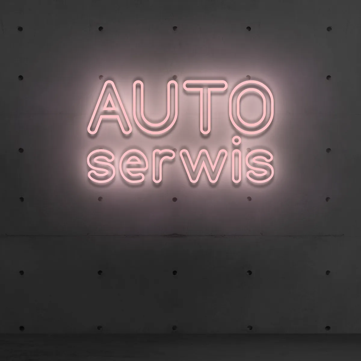 Auto serwis to nieodłączny element współczesnych usług, bez którego trudno wyobrazić sobie codzienne życie kierowców. Wielu z nich, podróżując, instynktownie wypatruje miejsc, gdzie mogą liczyć na szybką pomoc. Dlatego warto zadbać o to, by Twój warsztat był dobrze widoczny. Doskonałym rozwiązaniem jest neonowy napis „Auto Serwis” – jego intensywne światło przyciąga wzrok z daleka. Nawet przejeżdżający kierowcy zauważą go w ułamku sekundy i zapamiętają lokalizację. Litery są wyraźne, proporcjonalne i estetyczne, a ich układ w dwóch rzędach wzmacnia efekt wizualny.