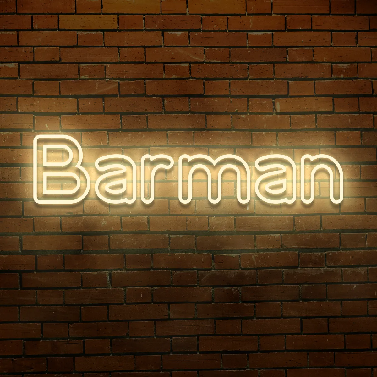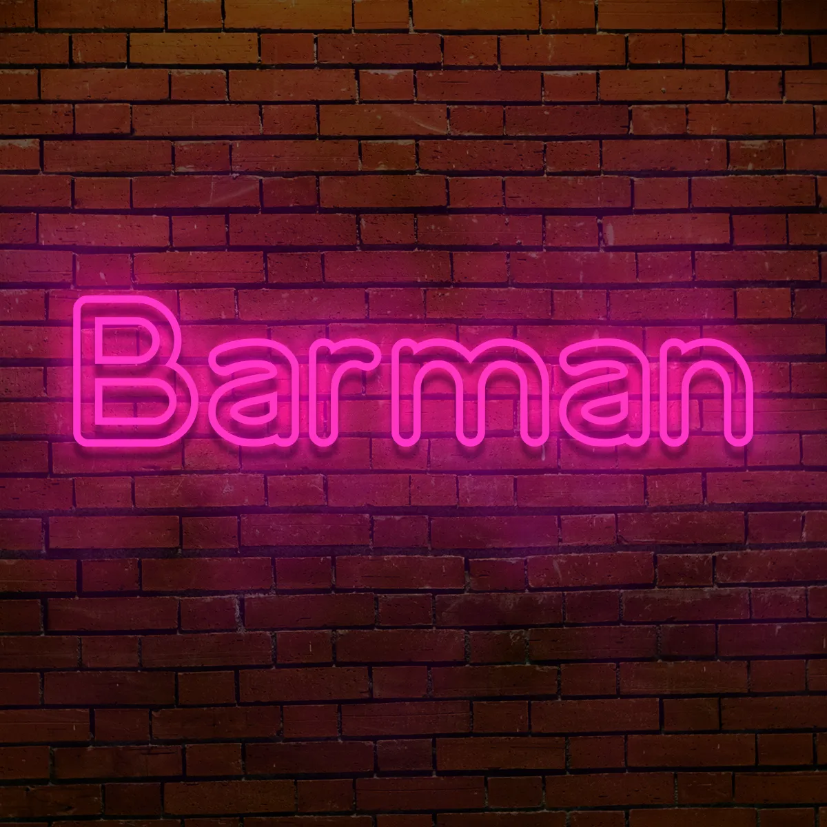 Neonowy napis „Barman” nie tylko wskaże miejsce pracy tego ważnego pracownika, ale także ozdobi ścianę za ladą barową. Dekoracja prezentuje się bardzo stylowo – wybraliśmy krój liter, który pasuje do najpopularniejszych stylów wnętrz. Ten neon świetnie uzupełni przestrzeń w stylu loft, modern, lounge i wielu innych.